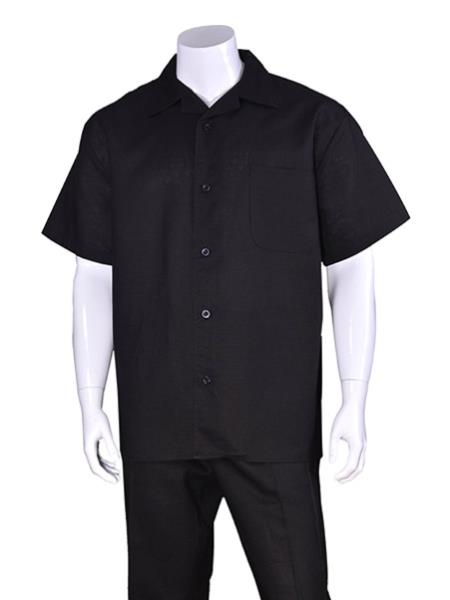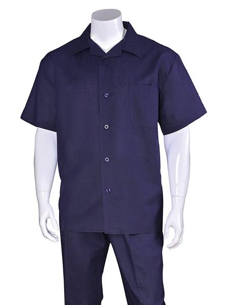 Mens Two Piece Linen Suit Relaxed Hybrid Fit No Collar