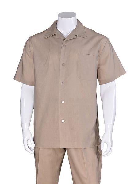 Men's Tan Sand Four Button V-neckline Suit - Mens Linen Suit