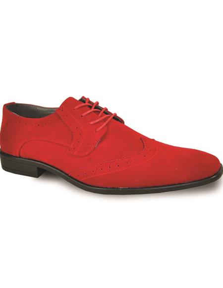 Mens Vegan Suede Wedding and Prom Wingtip Lack Up Dress Shoe in Red