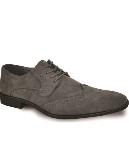 Mens Vegan Suede Wedding and Prom Wingtip Lack Up Dress Shoe in Grey