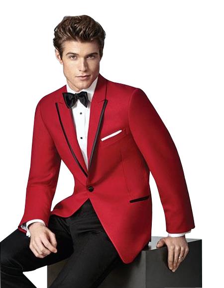 Mens Red Suit Fashion Tuxedo Jacket with Black & Black Trousers For Men