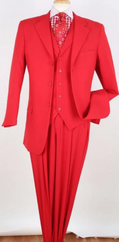 Classic 3 Piece 2 Button Solid Red Men's Suit Extra Fine Italian Red