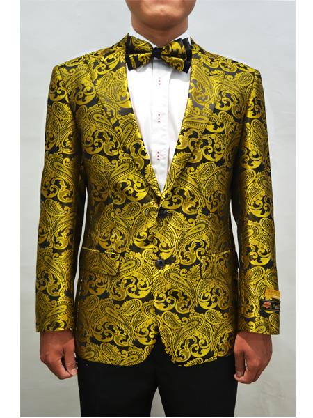 Men's Gold & Black Peak Lapel Paisley Pattern Prom Blazer