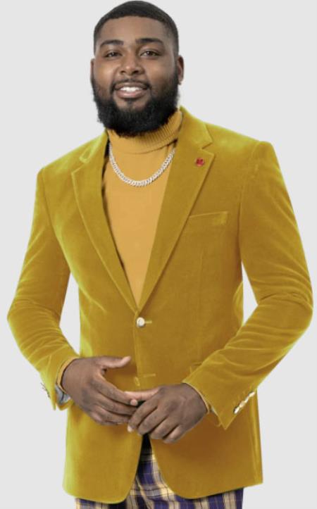 Alberto Nardoni Brand Men's Gold Velvet Lapel 2 Button Cheap Priced Designer Fashion Dress Casual Blazer On Sale Blazer