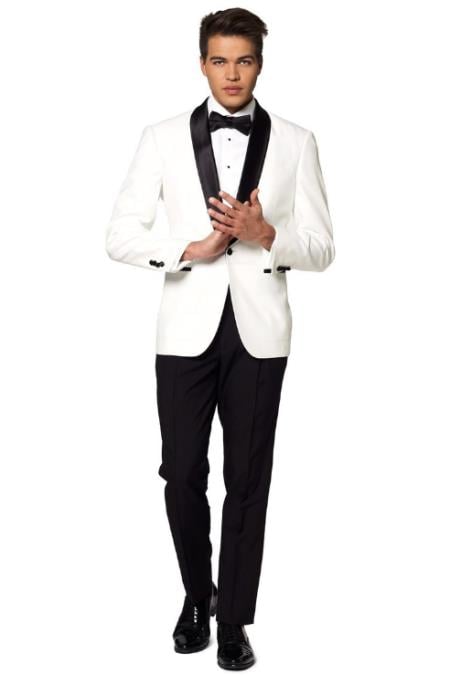 One Chest Pocket White and Black Two Button Outfit For Guys