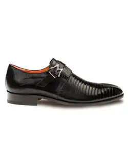 Pego Monk Strap Black Deerskin Shoes By Mezlan Made In Spain Brand