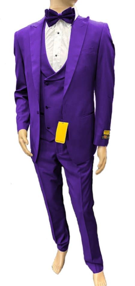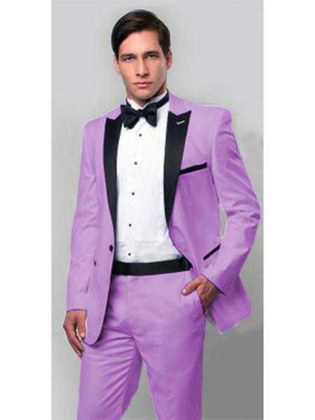 Mens One Button Notch Lapel Single Breasted Suit Lavender - Slim Fitted