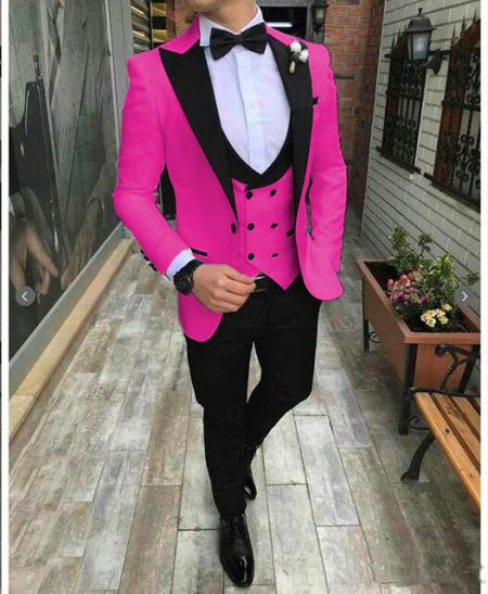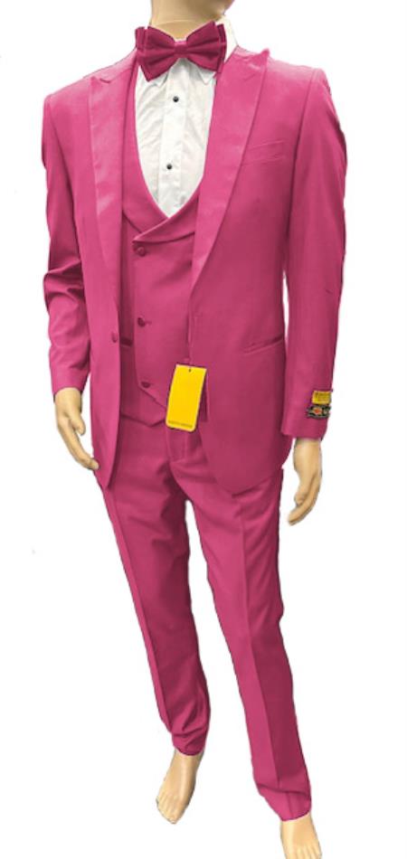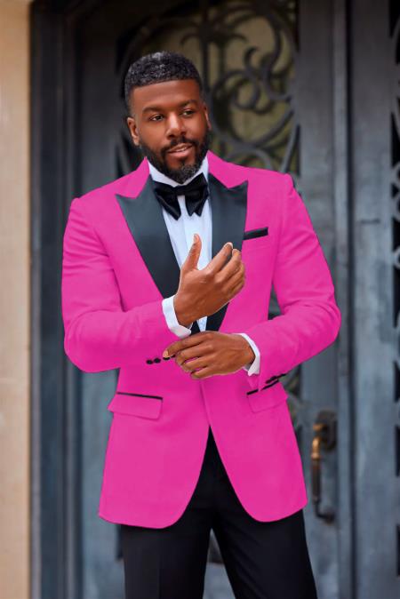 Mens One Button Peak Lapel Pink Suit - Slim Fit