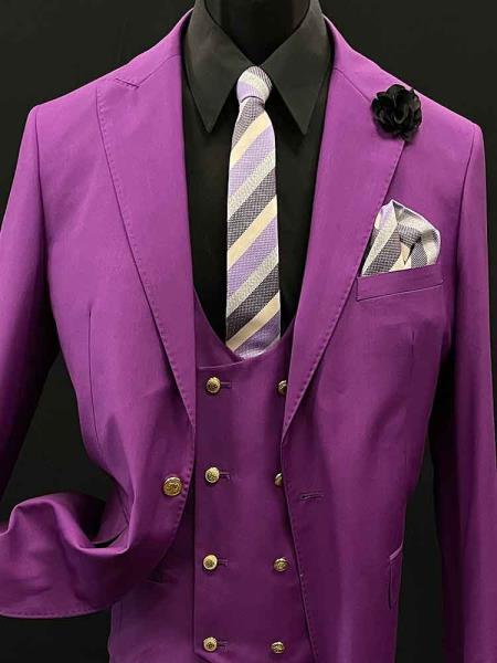 Mens One Button Notch Lapel Suit Lavender - Slim Fitted