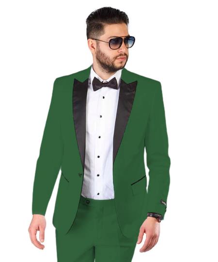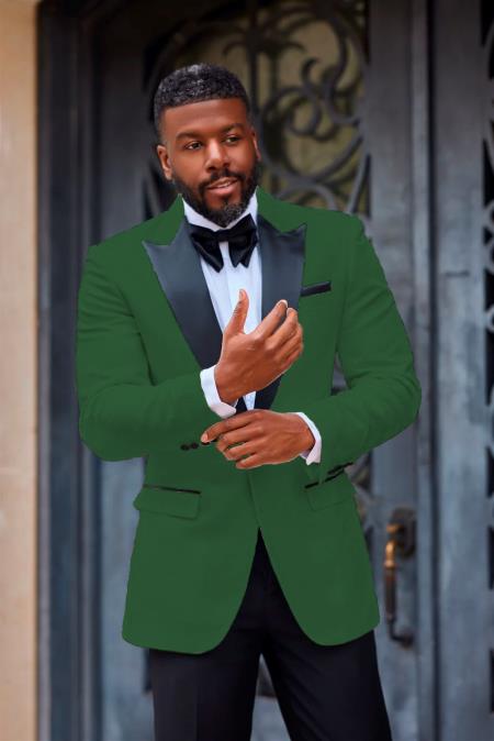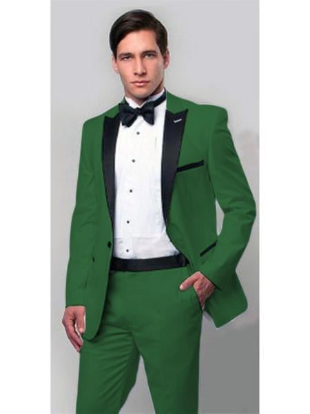 Mens One Button Notch Lapel Single Breasted Suit Hunter