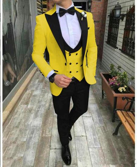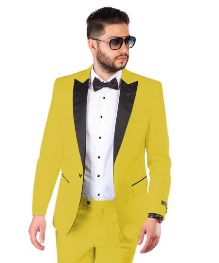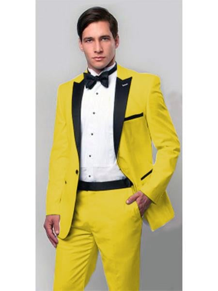 Mens One Button Notch Lapel Single Breasted Suit Yellow