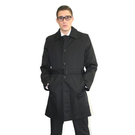 Mens Black Trench Coat - Short Coat - Slim Fit Coat