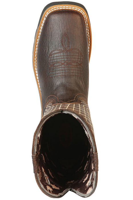 Botas de Trabajo de Cuero Horma Rodeo Color Cafe con Bandera USA GEN