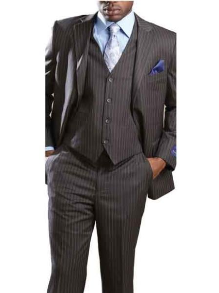 Men's Black Big & Tall 3 Piece Executive Pinstripe Suit