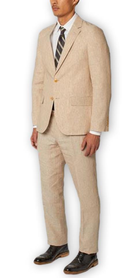 Two Button Pure Linen Suit Solid Tan ~ Beige - Mens Linen Suit