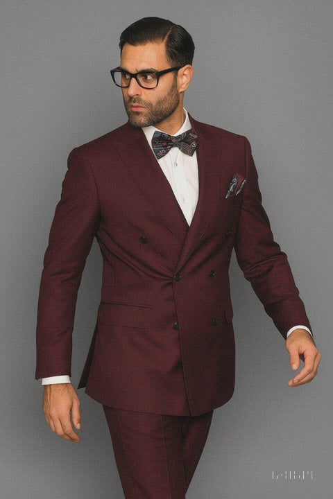 Men's Burgundy Double Breasted Wool Feel Suit