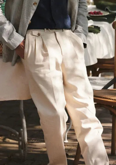Offwhite Flat Front Wool Pant by Tiglio Luxe