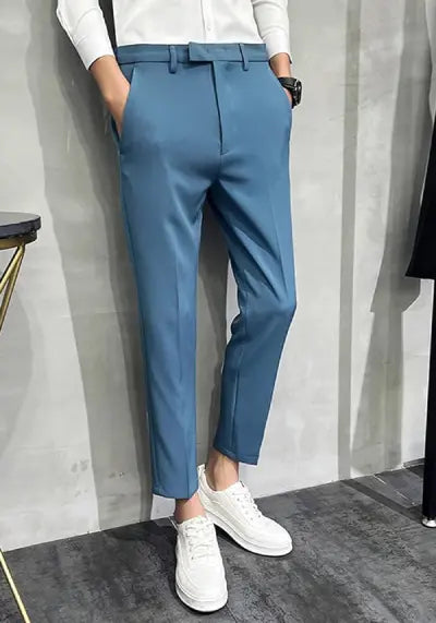 Men's Dress Pants Trousers Flat Front Slacks Light Blue