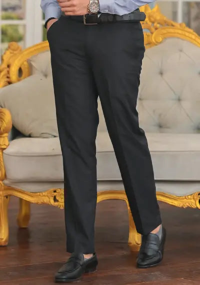 Men's Flat Front Pant Black Belt Loops Regular Fit Velvet Fabric