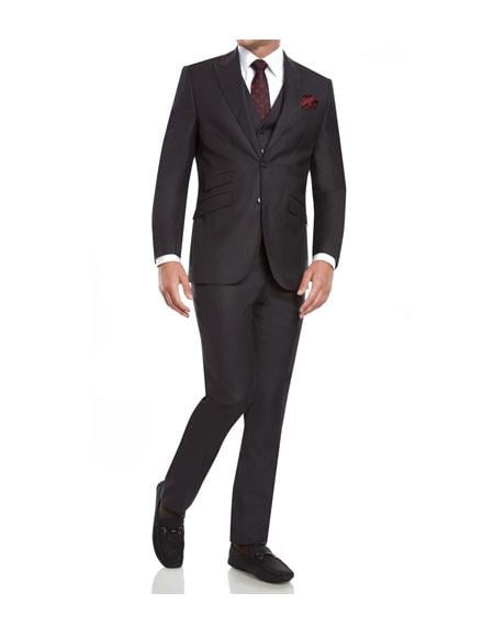 Men's slim fit 3 piece vested Charcoal suits with Ticket Pockets