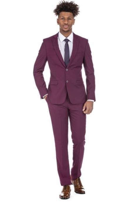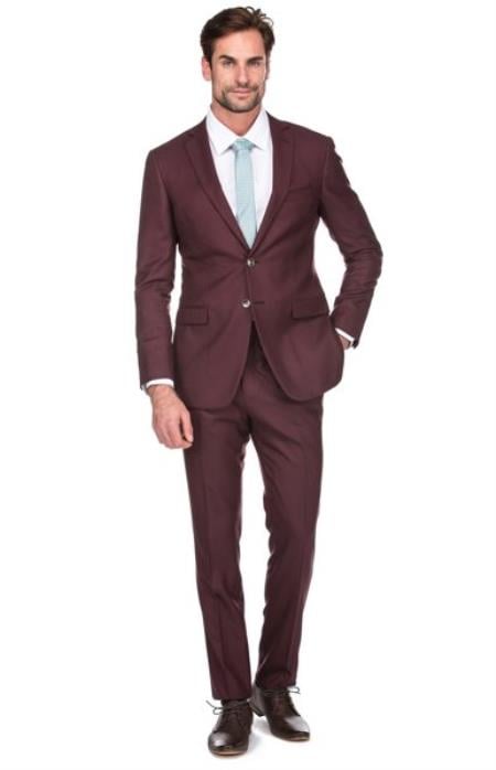 Men's Burgundy 3 PieceModern Fit Suits Burgundy Suit