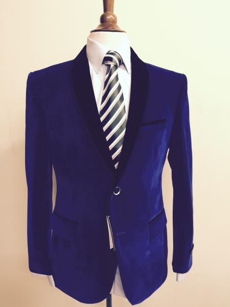 Velour Men's blazer Jacket Men's 2 Button Velvet Blazer Navy
