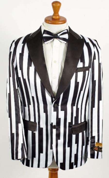 Mens Black and White Pinstripe Blazer - Black and White Striped Jacket