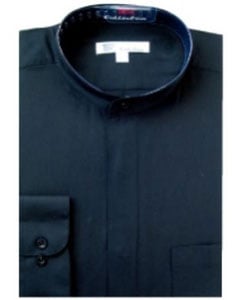 Band Collarless Black Men's Dress Shirt