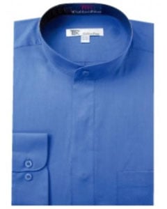 Blue Banded Collar Polyester Dress Shirt