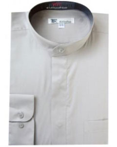 Grey 2-Button cuff Banded Collar Dress Shirt