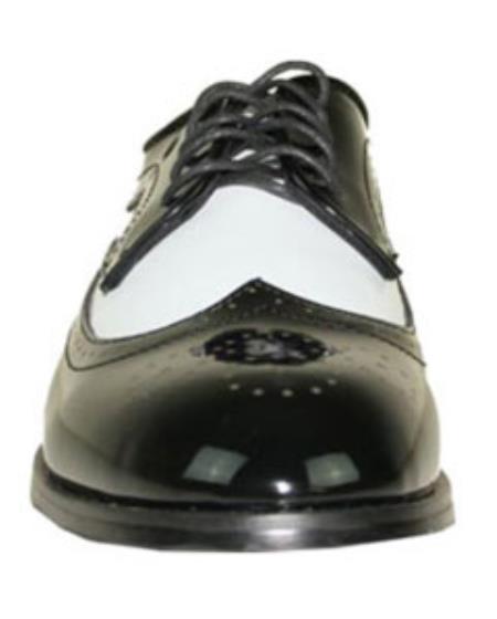 • With Two-Tone Black & White Combined Patent Finished Upper, Wing Tip Style Tuxedo is Designed for Wedding, Prom and Other Formal Events.