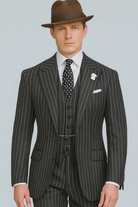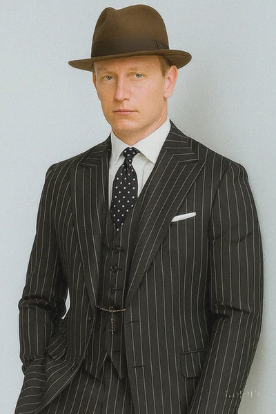 Step back into the golden era of classic men’s fashion with the 2 Button Black and Bold Chalk Gangster Suit – Style 33033. Inspired by the timeless looks of the roaring 1920s and the bold sophistication of old-school gangsters, this suit is a perfect blend of vintage charm and modern tailoring. Designed for men who want to stand out with sharp lines and undeniable presence, it’s a style that commands respect the moment you walk in the room.