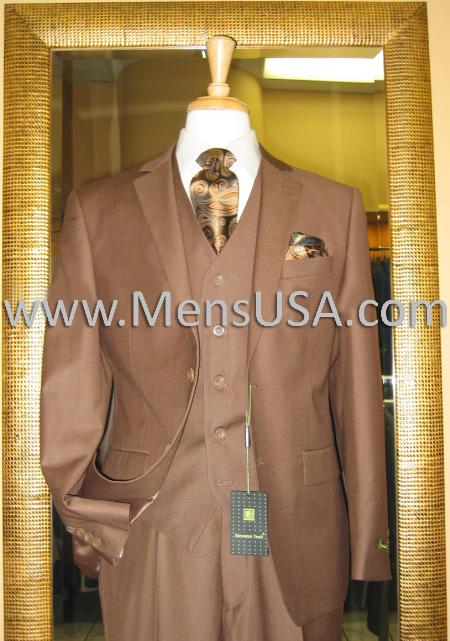 2 Button 3 Piece Mocca Fitted Suit Copper~Rust~Cognac