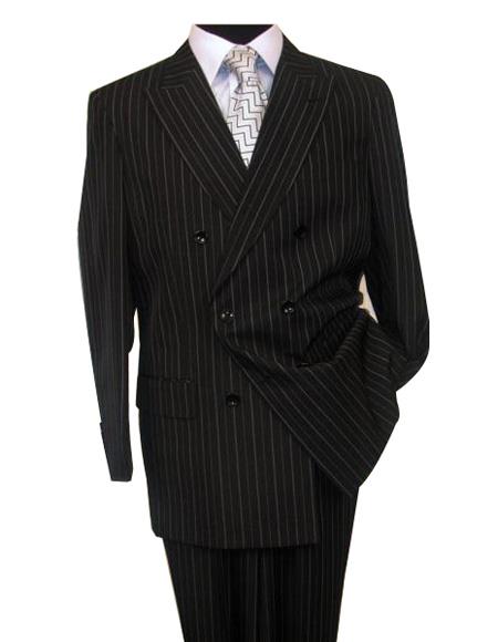 Alberto Nardoni Brand Pinstripe ~ Stripe Pattern Men's Black Button Closure Double Breasted Wool Suit