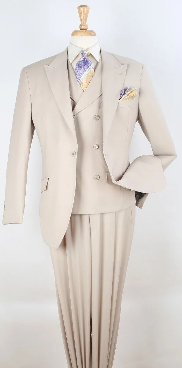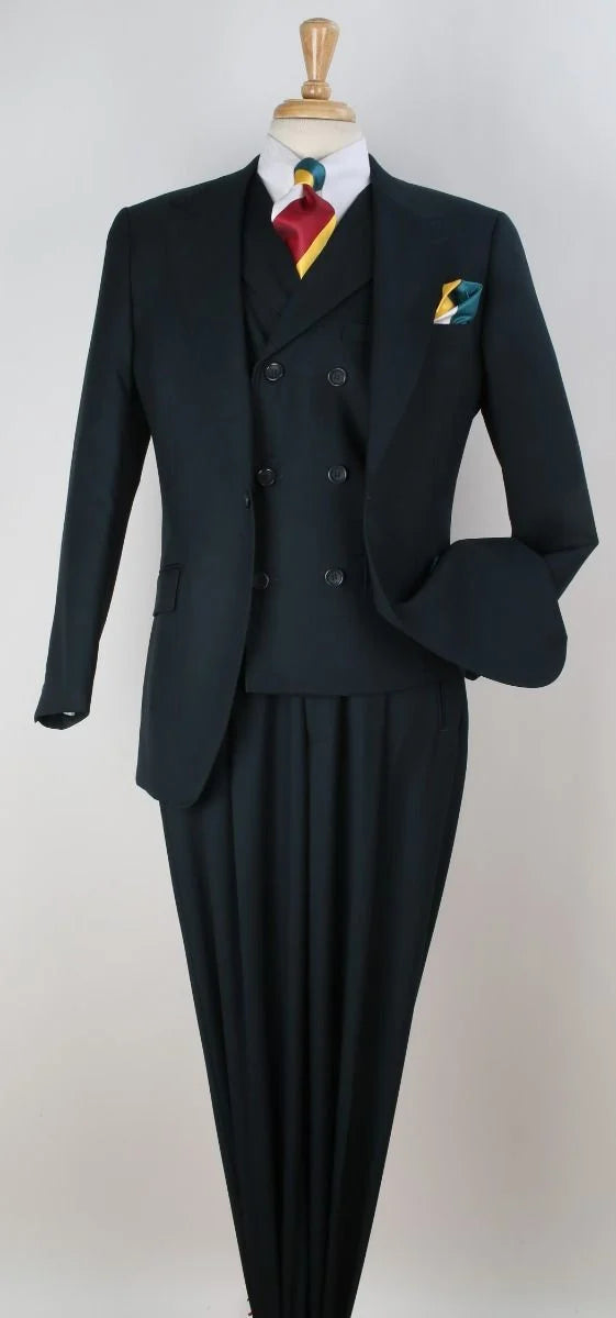 Apollo King fashion suits are back! These gorgeous 100% wool suits are a must-have for your fashion wardrobe. The double-breasted, 6-button vest with a peak lapel makes a fashion statement, topped with the high quality Apollo King is known for! The semi-wide leg pant offers extra legroom, and the standard length jacket perfectly blends high fashion with business style.