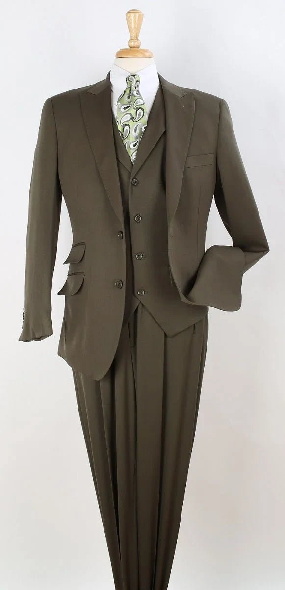 Apollo King Men's 3pc 100% Wool Outlet Suit - Fashion Peak Lapel