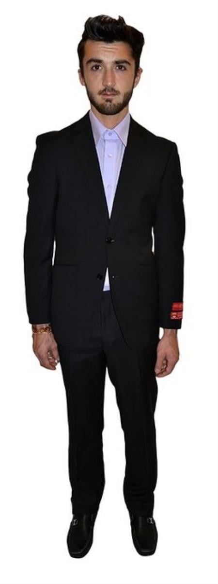 Authentic Mantoni Brand Tapered Leg Lower rise Pants & Get skinny Two Piece Slim Fit Suit Solid Black - High End Suits - High Quality Suits