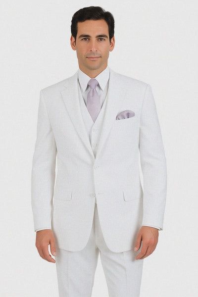 Step out with confidence in our Big & Tall Men’s Plus Size White Suit, cut from lightweight, breathable suiting that looks crisp in photos and stays comfortable from ceremony to reception. The jacket is balanced through the shoulders and chest with extra room where you need it, while the matching trousers offer a higher rise and relaxed seat/thigh for an easy, polished fit. Available with an optional vest to complete a three-piece look, this white suit pairs effortlessly with pastels or classic black accessories for any warm-weather dress code.