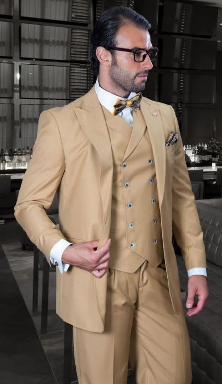Big and Tall Suits - 100% Wool Suit - Peak Lapel Classic Fit - Pleated Pants - Camel