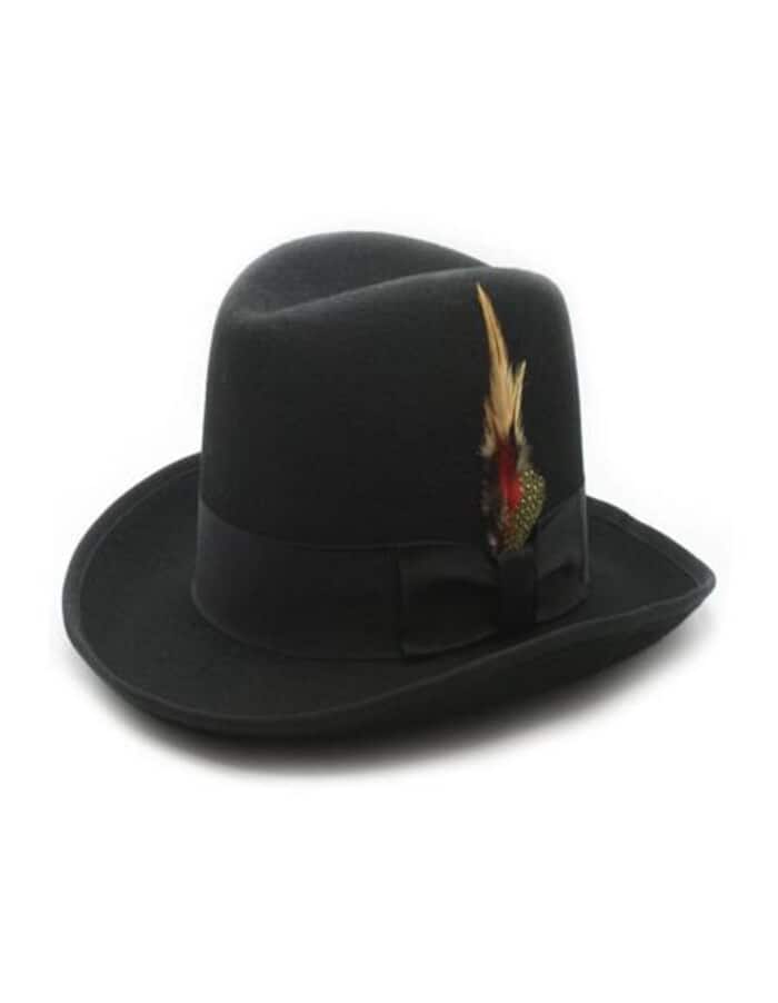 Black 1920s Mens Hat - Gangster Hat - 20s Dress Wool Hat