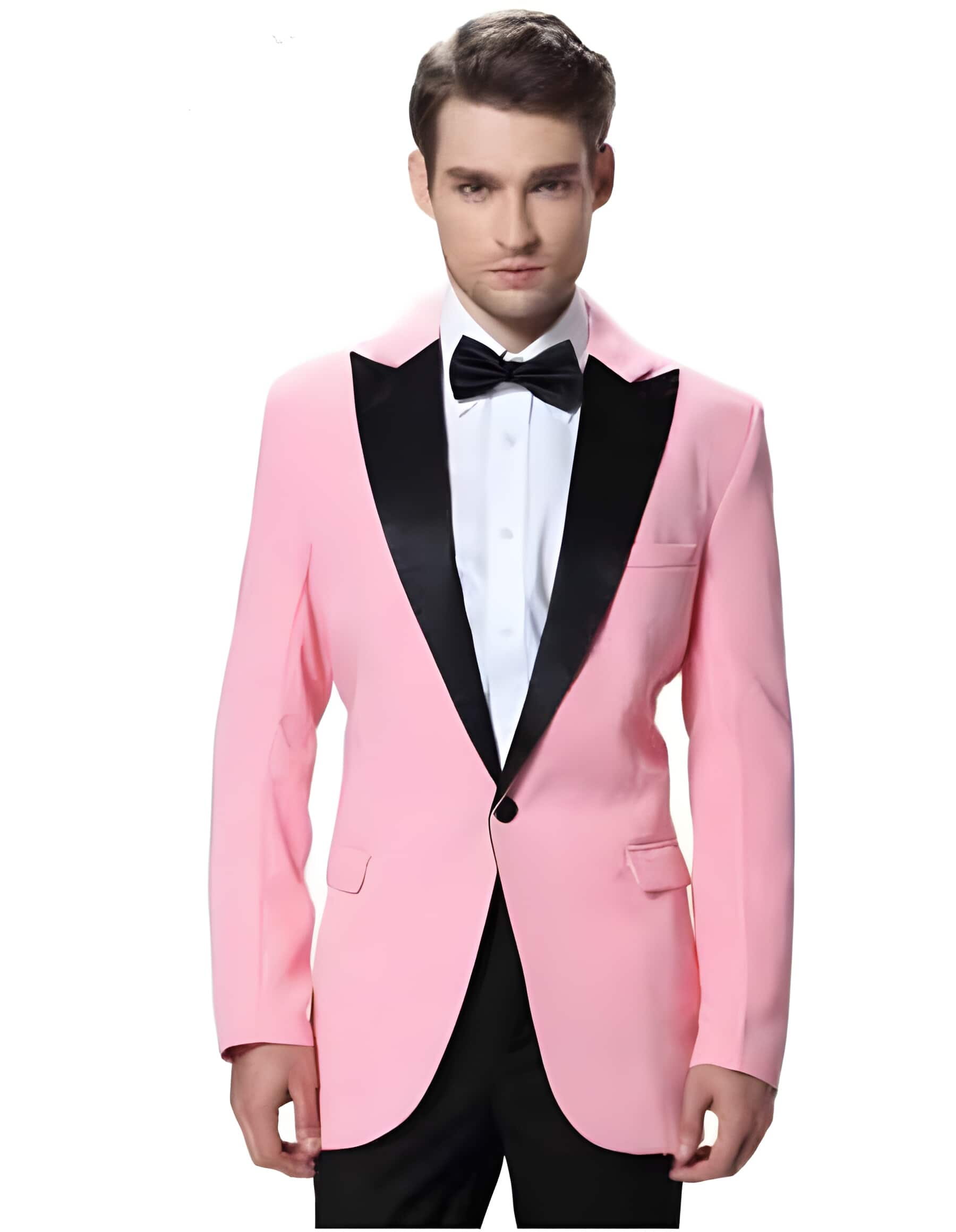 Black Lapel Prom ~ Wedding Groomsmen Pink Tuxedo Jacket with Black Pant One Button Elegant Slim Fit Wedding Suit