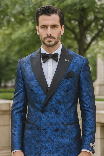 Blue Double Breasted Rough Streak Pattern Satin Peak Lapel Stacy Adams Men's Jacket