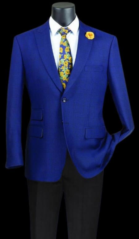 Blue Plaid Blazer - Mens Blue Windowpane Sportcoat