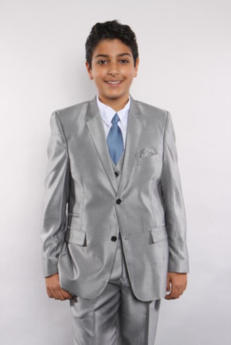Boy's Silver Sharkskin 5 Piece Perfect for toddler Suit wedding attire outfits
