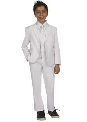 Boy's Tazio 5 piece Suit with Shirt & Tie Snow White