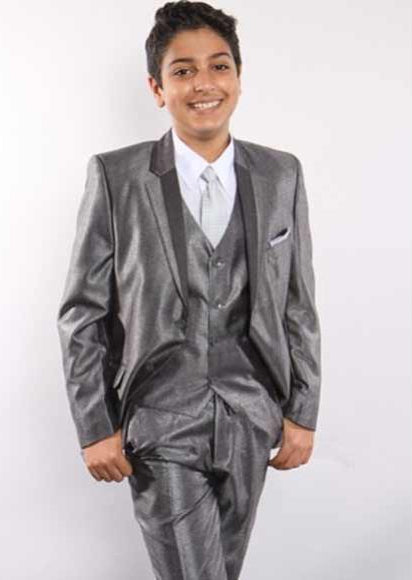 Boy's Two Toned Grey Suit Vested With Shirt,Tie & Hanky