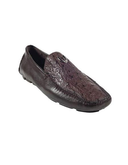 Brown Dress Shoe Mens Brown Genuine Full Quill Ostrich Drivers Vestigium Driving Shoes slip on Stylish Dress Loafer for men Mens Ostrich Skin Shoes
