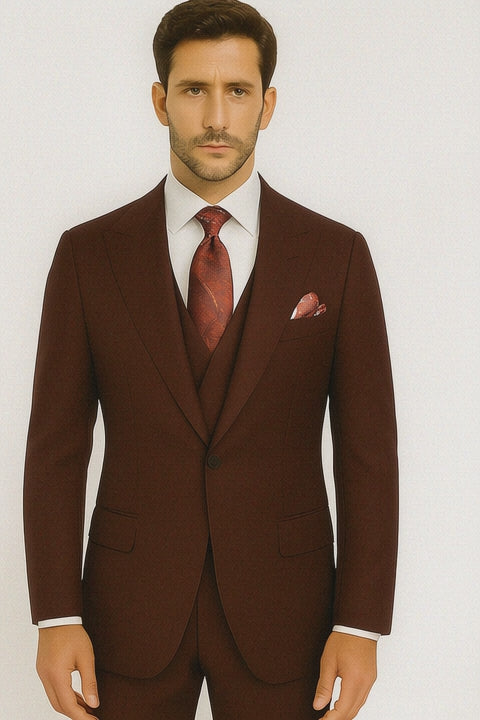 Crafted in a rich burgundy color, this suit is perfect for men who want to stand out while still keeping their look grounded in classic menswear tradition. The classic fit offers comfort and room without sacrificing structure, making it ideal for a wide range of body types and formal occasions.
