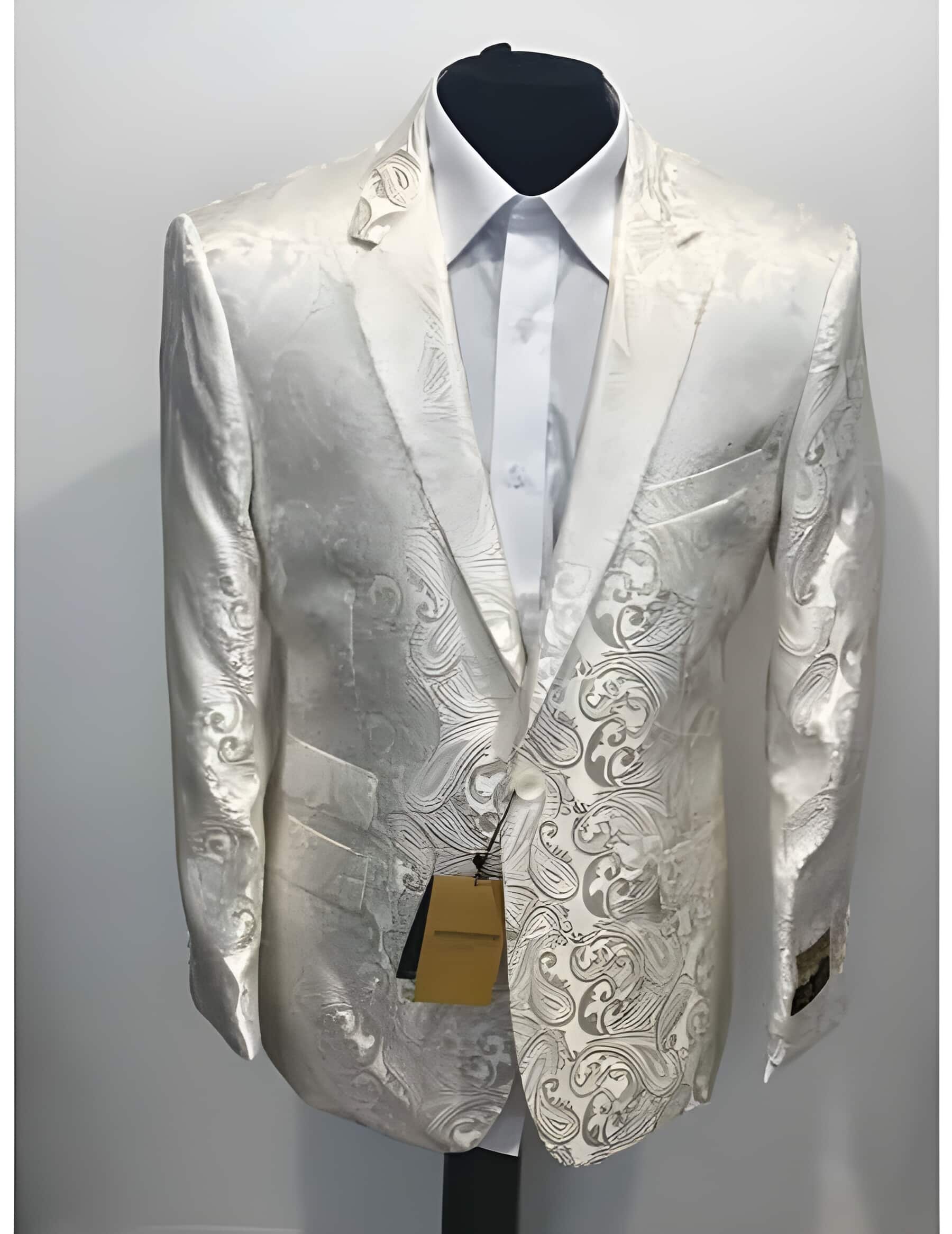 1 Button Paisley Pattern Off White Fancy Party Blazer ~ Suit Jacket For Men