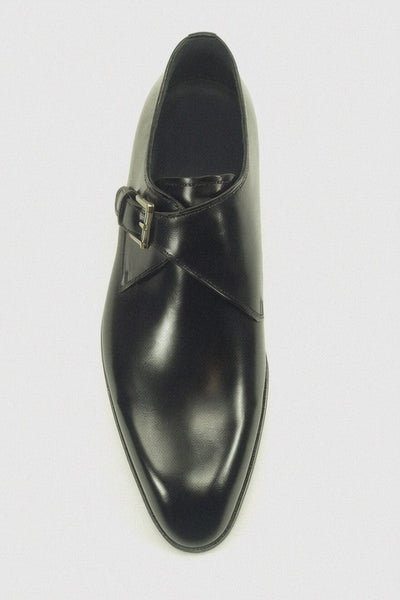 Carrucci Men's Black Genuine Calfskin Leather With Monk Strap Fashion Black Dress Shoe- Men's Buckle Dress Shoes